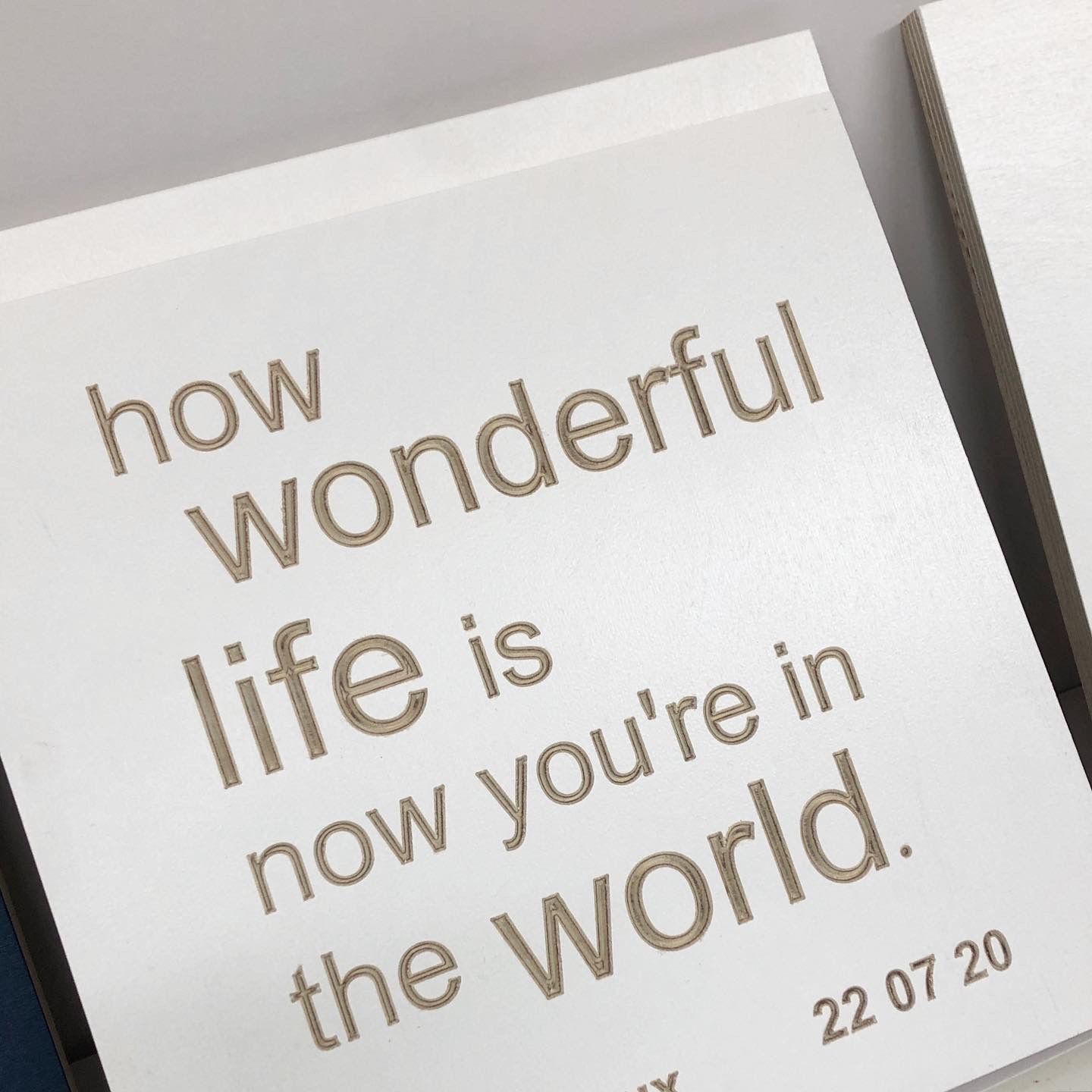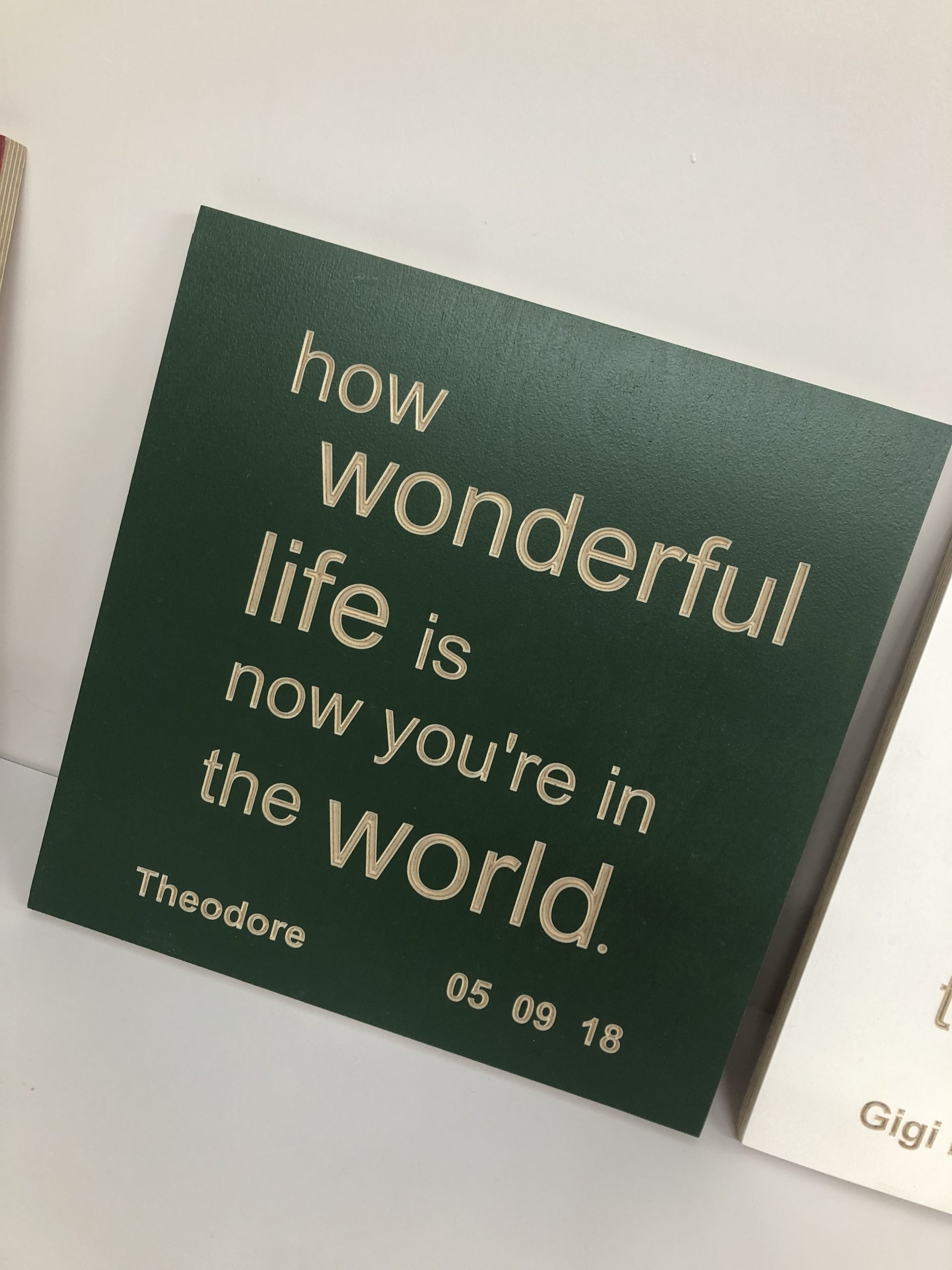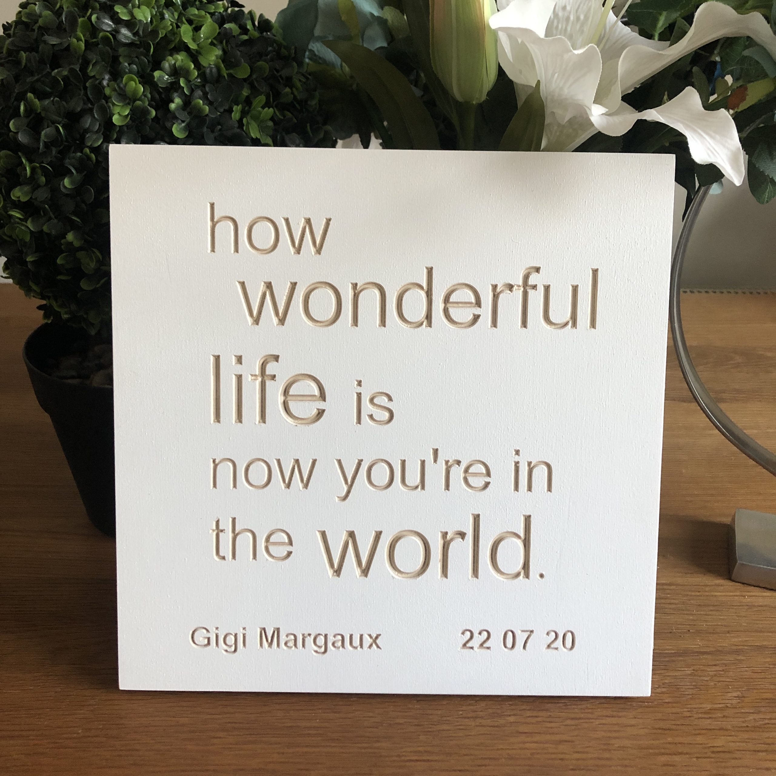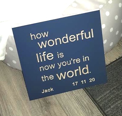 Our engraved wooden plaques that can be customised specially for you. They make beautiful gifts and this personalised contemporary wall art comes in a variety of colours to compliment any home. This selection are suitable for New Babies and Children.